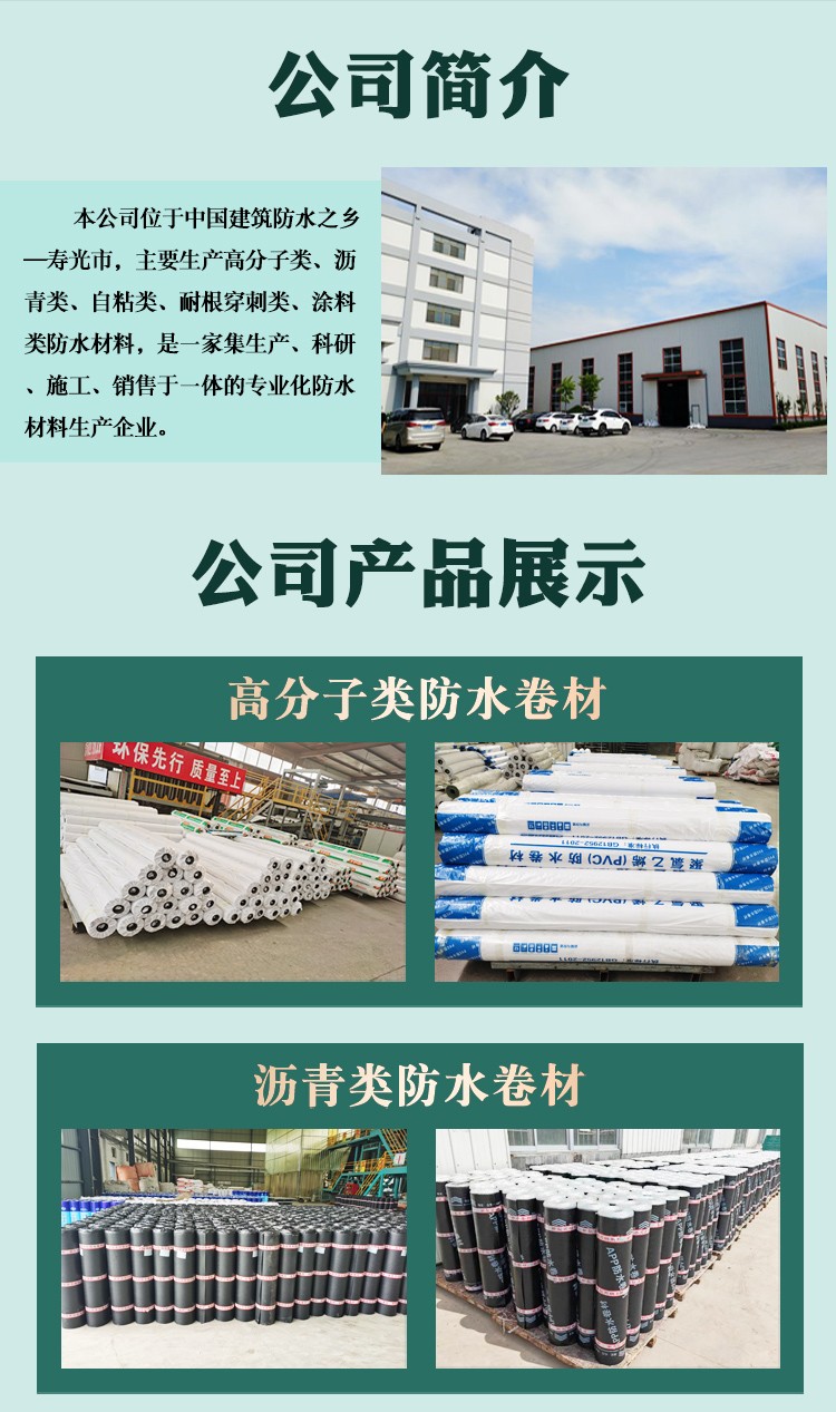 山东银荷防水材料有限公司是集防水材料研发、生产、销售、施工售后为一体的专业化新型防水材料生产企业,主要产品有:pvc防水卷材,sbs防水卷材,高分子防水卷材,自粘防水卷材,丙纶防水卷材等,产品畅销全国,深受用户好评。了解最新产品报价可以联系我们网站 http://www.pvcjuancai.com/ 上电话,我们会第一时间跟您联系。