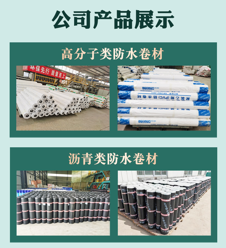 山东银荷防水材料有限公司是集防水材料研发、生产、销售、施工售后为一体的专业化新型防水材料生产企业,主要产品有:pvc防水卷材,sbs防水卷材,高分子防水卷材,自粘防水卷材,丙纶防水卷材等,产品畅销全国,深受用户好评。了解最新产品报价可以联系我们网站 http://www.pvcjuancai.com/ 上电话,我们会第一时间跟您联系。